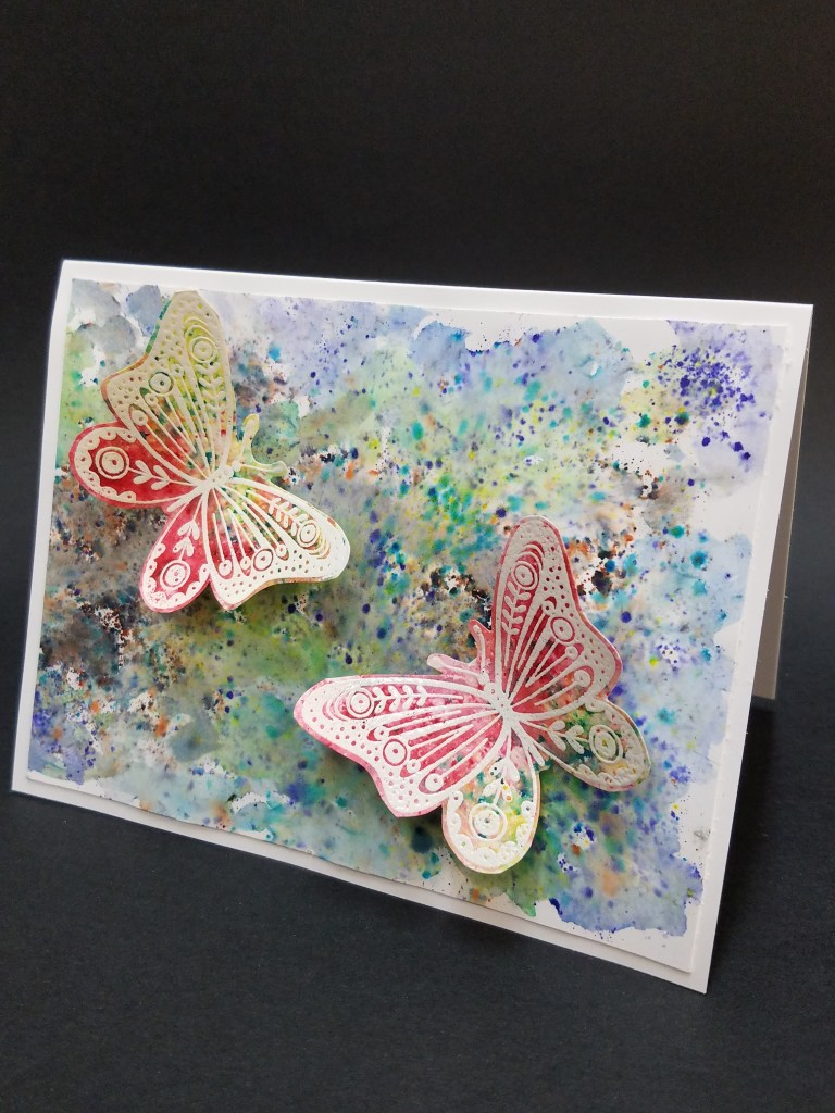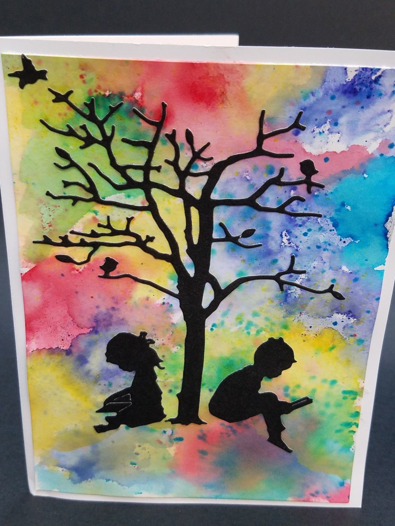 Today we had a ‘play’ with Brusho, a highly pigmented watercolour powder which goes a long way. We learnt four different ways of using Brusho and it was exciting to see the different effects we all got. Below four of the cards produced. Book in to have a go yourself, we would love to see you! We have ten different colours in store at the moment if you would like to purchase to have a play at home. One benefit is it washes off your clothes with water!!