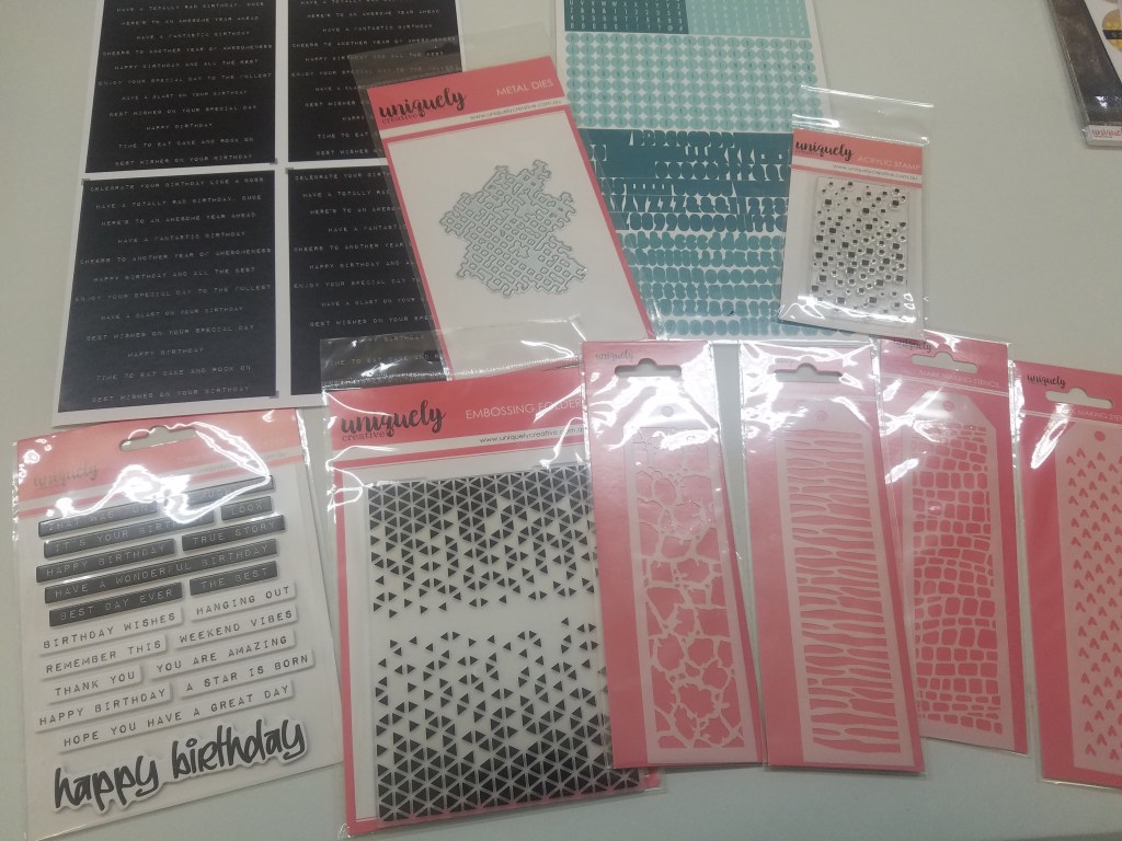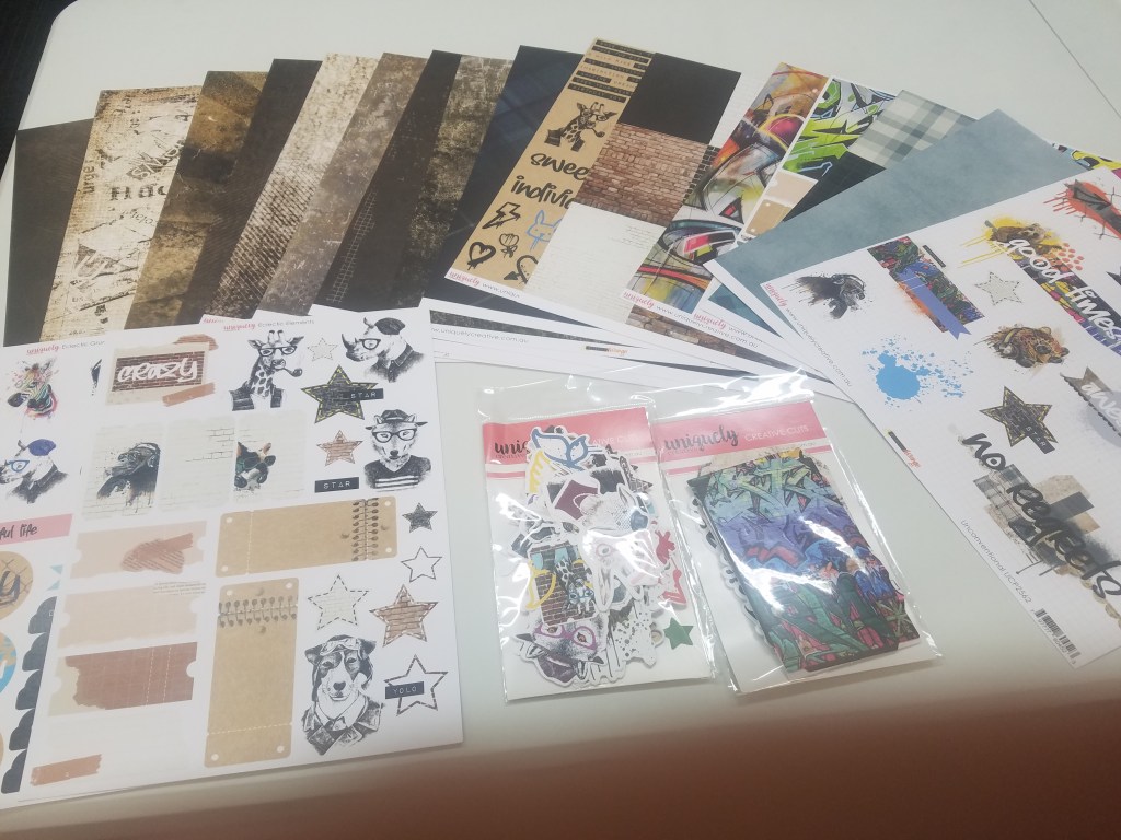 Have a look at the new release from Uniquely Creative. This month’s is Eclectic Grunge – a totally different release which would be great for male/teenage cards/pages. The release includes 12×12, 6×6 papers, creative cuts, cut apart sheets, dies, stamp, stencils, embossing folder, and stickers. To get a closer look we would love to see you in the shop!