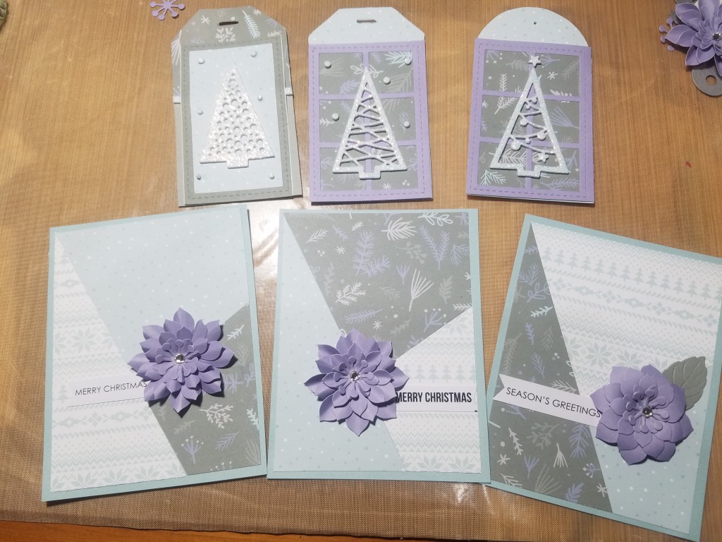 This weeks class is a cut, shuffle and stack technique which results in three cards and three tags. My ladies have been enjoying this technique.